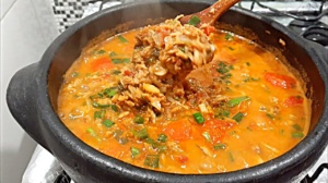 Jaci costuma servir a moqueca com arroz. Segundo ela, a diferença entre a moqueca e o refogado de aratu é que a segunda opção não leva leite de coco.